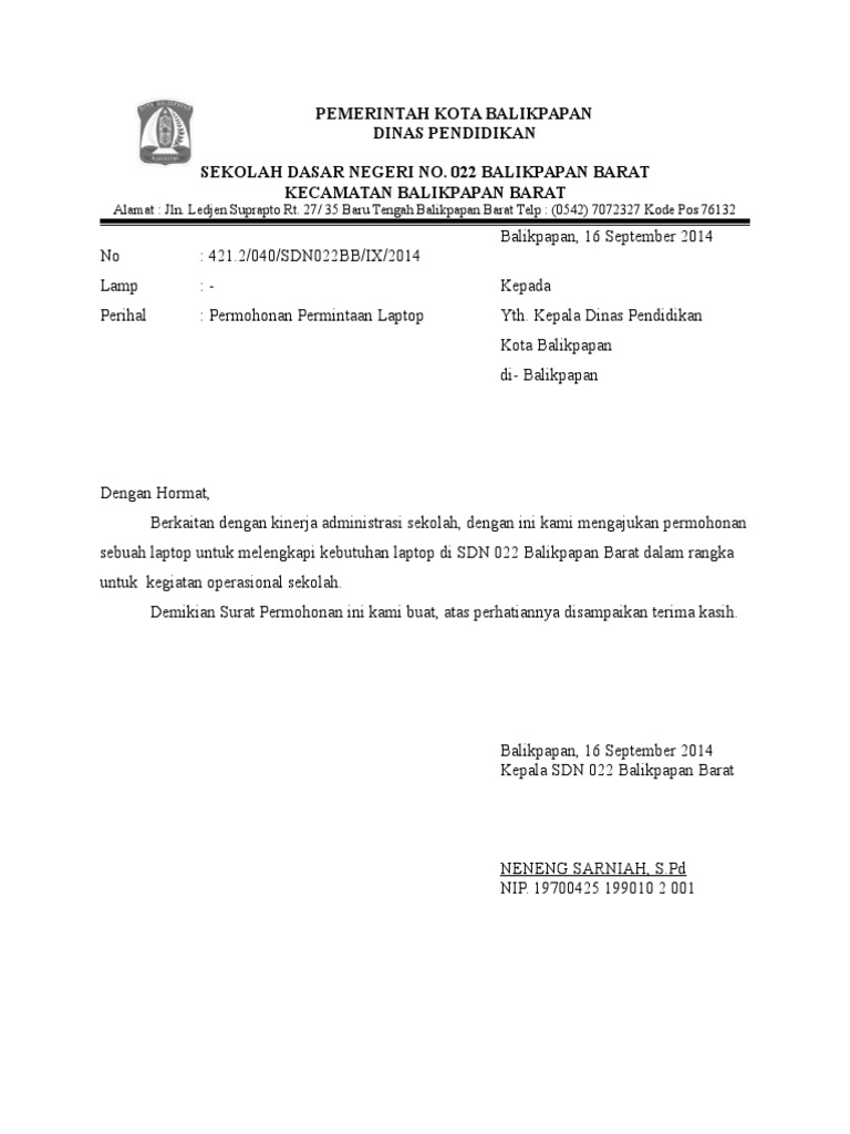 Contoh surat rasmi permohonan bantuan komputer riba via. Contoh Surat Permohonan Laptop Mengingat begitu banyaknya hal hal yang harus di kerjakan dengan teknologi komputer dan sejenisnya maka kami selaku pengurus osis mengajukan permohonan pengadaan sarana kerja it berupa computer laptop note book kepada kepala sekolah sma negeri 1 warungkira. Keingin tahuan mereka pada berbagai mediakomunikasi perlu mendapatkan perhatian semua pihak.