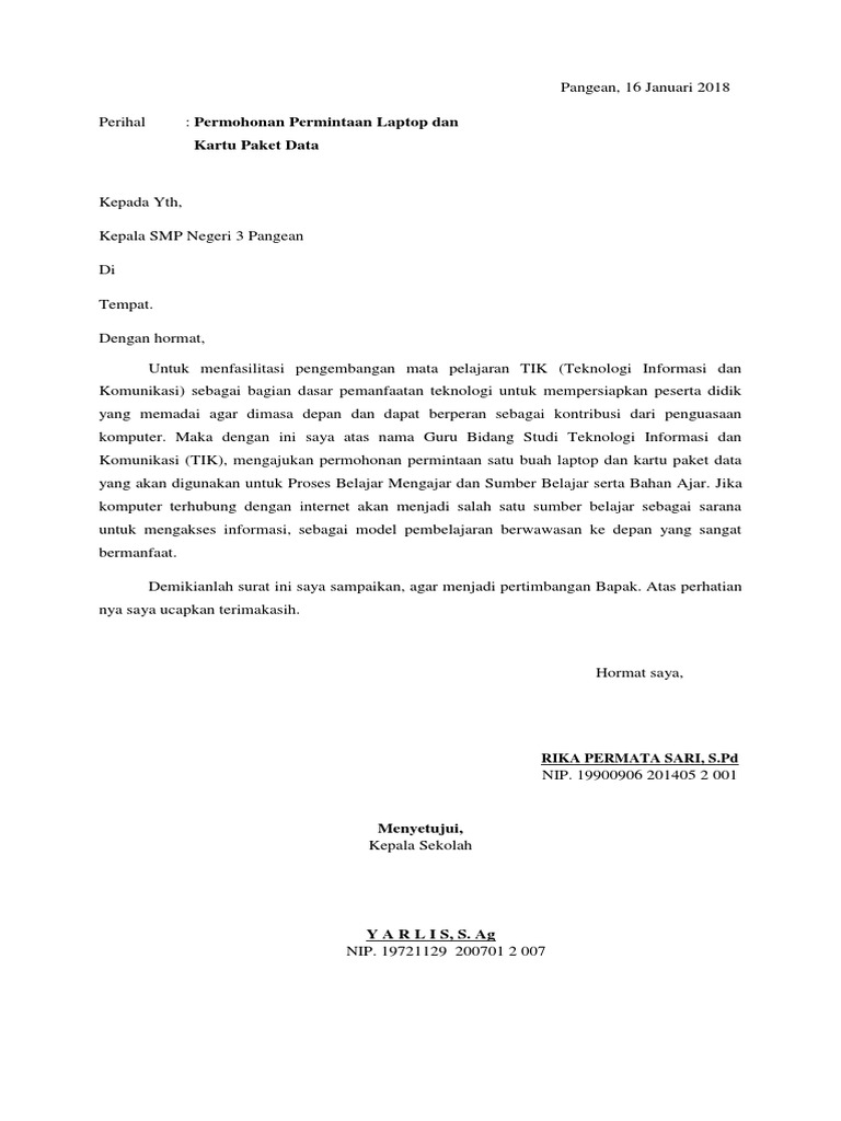 Contoh Surat Permohonan Bantuan Laptop Contoh File Proposal Bantuan Laptop Kata Pengantar Dengan memanjatkan Puji Syukur kehadirat Allah SWT atas segala Rahmat Taufiq dan Hidayah-Nya sehingga penulisan Proposal Bantuan Pengadaan Laptop untuk Tenaga Pendidik ini dapat tersusun dengan lancar. We did not find results for. Contoh Surat Permohonan Laptop.